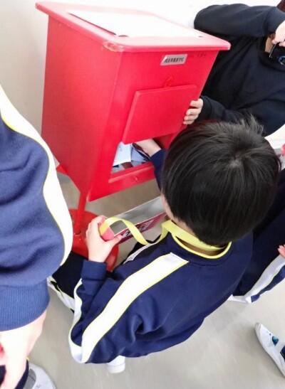 小学部中学年の12月の生活単元学習では郵便屋さんの仕事内容や手紙の書き方について学習しています。3・4年生が郵便屋さんとなり、校内に設置されたポストから郵便物の回収、仕分け、消印をし、各クラスの郵便受けに配達を行いました。