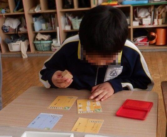回収した手紙を学年ごとに違うはがきの色や郵便番号を見て仕分けを行ったあと、消印を押し、各クラスへ配達しました。友だちと「666―1111だから6年1組だよ。」などと教え合いながら協力して取り組んでいました。