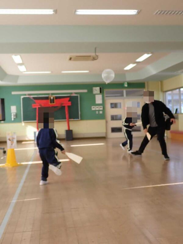 羽根つきは風船を使い、楽しく遊ぶことができました。