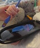 今年度も、自分の得意な方法でこいのぼり制作を行いました。クレープ紙や千代紙を担任と一緒にちぎって画用紙に貼り付けたり、絵の具を手や指で広げたり、ホイップ粘土で模様をつけたりと、個性豊かで素敵な作品に仕上がりました。発表会では、移動できる子がベッドサイドで学習する友達のところを訪れ、作品の紹介をしたり、友達が作った作品に触れたりしました。